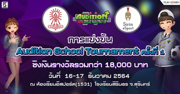 AUDITION เกมแดนซ์ออนไลน์สุดฮิตอันดับ 1 ของเมืองไทย จาก PlayPark.com ต่อยอดความสำเร็จหลังจากที่ นายชัชพงศ์ พงศ์ศุภะมงคล (ไกด์) สามารถคว้าแชมป์ในเวทีระดับโลก Esports WorldChampionship 2021 มาได้สำเร็จ ด้วยการจัดแข่งขันอีสปอร์ต “Audition School Tournament” ซึ่งเป็นการแข่งขันเกม AUDITION ในโรงเรียนมัธยมครั้งแรก โดยประเดิมสนามแรกที่โรงเรียนสิรินธร จังหวัดสุรินทร์