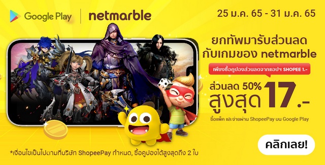 เกม Netmarble ลดสูงสุด 50% ทุกเกม! พิเศษเฉพาะลูกค้า ShopeePay วันนี้ – 31 มกราคม 2565 นี้ เท่านั้น!