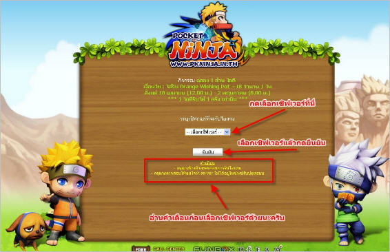 เลือกเซิร์ฟเวอร์เกมที่เล่น และอ่านคำเตือนก่อนกดยืนยัน