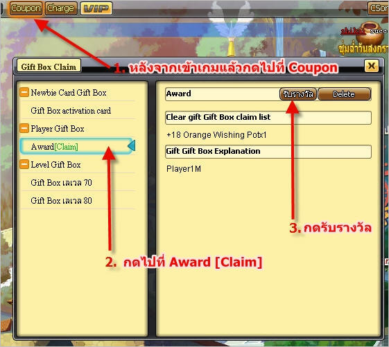 ขั้นตอนสุดท้ายสามารถเข้าไปรับ ITEM ในเกมได้เลยครับ