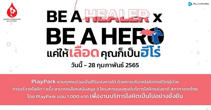 PlayPark.com ผู้ให้บริการเกมออนไลน์ชั้นนำในเครือเอเชียซอฟท์ฯ ตระหนักถึงปัญหาการขาดแคลนเลือดขั้นวิกฤตที่เกิดขึ้นจากสถานการณ์การแพร่ระบาดของ COVID-19 ทำให้จำนวนผู้บริจาคโลหิตลดน้อยลงอย่างต่อเนื่อง ซึ่งส่งผลกระทบกลับกลุ่มผู้ป่วยโรคเลือด ผู้ป่วยผ่าตัด ผู้ป่วยมะเร็ง ผู้ป่วยอุบัติเหตุ ทำให้ผู้ป่วยเหล่านี้ต้องถูกชะลอการรักษาและเลื่อนการผ่าตัดออกไปเป็นจำนวนมาก จึงร่วมกับ ศูนย์บริการโลหิตแห่งชาติ สภากาชาดไทย เปิดตัวแคมเปญ PlayPark BE A HEALER x BE A HERO แค่ให้เลือด…คุณก็เป็นฮีโร่ เพื่อเชิญชวนทุกคนร่วมเป็นส่วนหนึ่งของการให้ที่ยิ่งใหญ่ ด้วยการบริจาคโลหิตต่อชีวิตผู้ป่วยที่รอการรักษาอยู่เป็นจำนวนมาก เพราะนอกจากโลหิต 1 ถุง จะสามารถช่วยเหลือผู้ป่วยได้ถึง 3 คนแล้ว ผู้บริจาคโลหิตยังสามารถเลือกสนับสนุน 1 ใน 3 โครงการภายใต้การดำเนินการของศูนย์บริการโลหิตแห่งชาติ สภากาชาดไทย โดย PlayPark จะมอบ 1,000 บาท ต่อการบริจาคโลหิต 1 ครั้ง เพื่อช่วยให้งานบริการโลหิตเป็นไปอย่างยั่งยืน