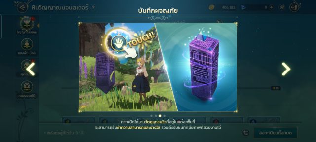 + รับค่าพลังจากบันทึกซึ่งหมวดนี้ จะประกอบด้วย 4 หัวข้อ ผลงาน ,สมุดภาพ ,มาสเตอร์ บันทึกการผจญภัย โดยหลักๆจะเป็นการสะสมไอเทม อิมาเจน สกิล และคอสตูมเพื่อรับค่าพลัง