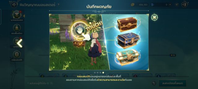 + หีบสมบัติ มีแผนที่ละ 3 กล่อง เมื่อสำรวจจะได้รับค่าพลังเช่นกัน