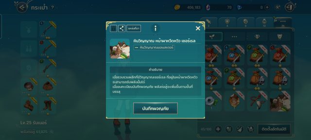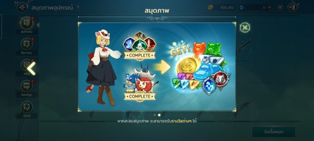+ อัพเกรด สกิล ตัวละครอุปกรณ์ และอย่าลืมที่หัวข้อพัฒนา