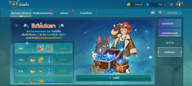 – แพคเกจที่คุ้ม ก็คือแพคเกจเริ่มต้น (ร้านค้า >แพคเกจแนะนำเริ่มต้น) ซึ่งจะสามารถซื้อได้เพียง 1 ครั้ง สนนราคาเพียง 149 เท่านั้น แต่หากใครมีทุนทรัพย์ แพ็จเก็จเริ่มต้นพิเศษ (729฿) ก็น่าสนใจไม่น้อย และอย่าลืมแพ็จเกจบรรลุ ที่จะมาเมื่อตอน LV 10 หรือตอนบรรลุพลังต่อสู้ ซึ่งจะได้คูปองสุ่มอิมาเจน 10-13 ใบในราคาเพียง 149฿ เท่านั้น (มีจำกัดเวลา) และหากมีเพชรเหลือแนะนำ รีเทิร์นไดอา ลงทุน 1600 ไดอา เมื่อเช็คชื่อครบ 7 วันจะได้รับ 1600 ไดอาคืน แถม ต่างหู 3 ดาว Gold และเอเนอจี้ดริ้งก์(เพิ่ม exp) เรียกว่าคุ้มเหมือนได้ของฟรี