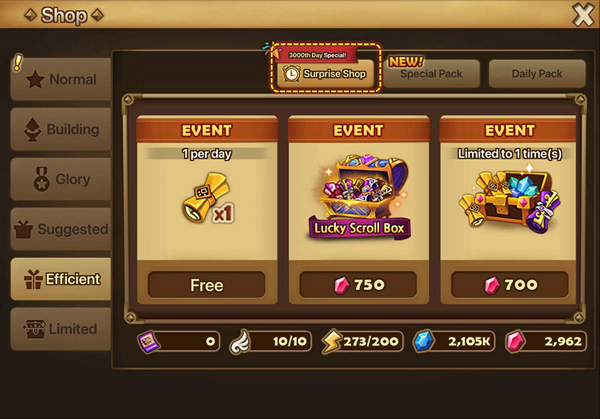 ยังเพิ่ม กิจกรรมฉลองการเปิดให้บริการครบ 3,000 วัน เข้ามา โดยเปิดกิจกรรมสะสมแต้มการใช้พลังงาน และ การใช้คริสตัลไว้แลกทั้ง ชิ้นส่วนคัมภีร์ก้าวข้ามขีดจำกัดและ ตั๋วเปิดกล่องสุ่มคัมภีร์พิเศษ และรางวัลอื่นๆมากมาย พร้อมกับร้านค้าเซอร์ไพรส์ ให้เพื่อนๆได้พบกับสินค้าต่างๆในราคาพิเศษ ไฮไลต์คือกล่องสุ่มคัมภีร์แห่งโชคลาภ ที่มีคัมภีร์ปังๆต่างๆมากมายในราคาแค่ 750 คริสตัล! ร้านค้าจะเปิดถึงวันที่ 22 ก.ค. นี้เท่านั้น รีบปั๊มคริสตัลแล้วไปถลุงในร้านกันค่ะ!