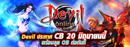 หลังจากทีมงานได้ทำการเปิดทดสอบ VIP TEST เพื่อทดสอบความพร้อมและสร้างกระแสความมันส์ของเกมสไตล์ MMORPG สงครามสุดมันส์ Devil Online ไปแล้ว ทีมงานจึงขอประกาศเดินหน้าต่อด้วยความพร้อมเต็มที่ Close Beta 20 มิถุนายนนี้ พร้อม Open Beta ต่อทันทีในวันที่ 27 มิถุนายนนี้