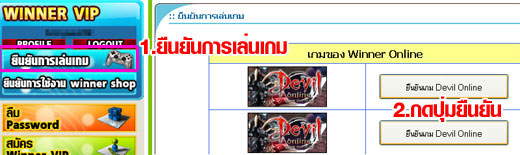 พิเศษสำหรับผู้เล่นทุกท่านที่มี Winner VIP อยู่แล้ว สามารถใช้ Winner VIP ของท่านนำไปยืนยันการเล่นเกมเพื่อเล่นเกม Devil Online ได้ในช่วง Close Beta ทันที เพียง Login และกดปุ่มยืนยันการเล่นเกม Devil Online แล้วพบกันกับช่วง Close Beta 20 มิถุนายนนี้ สามารถติดตามรายละเอียดเพิ่มเติมได้ที่ www.devil.in.th