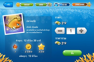 สามารถเลือกเลี้ยงปลาหลากหลายชนิด ตามเลเวล และกำลังเงินที่คุณมี