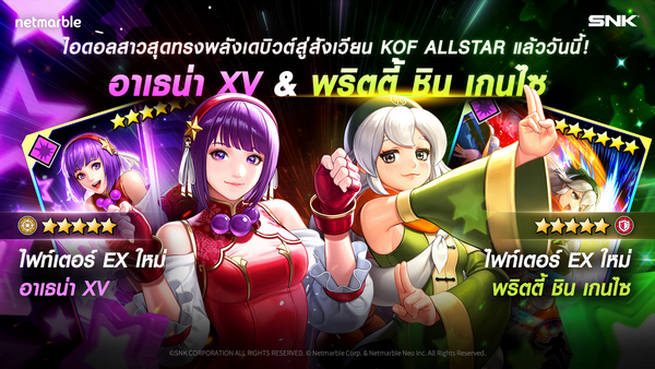อัปเดตล่าสุด The King of Fighters ALLSTAR ร่วมทีมกับ อาซามิยะ อาเธน่า XV และ พริตตี้ ชิน เกนไซ 2 สาวไฟท์เตอร์สุดปังใหม่