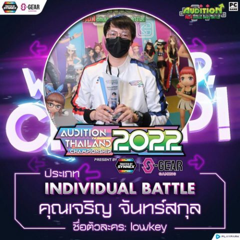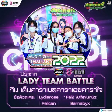 AUDITION PC เกมแดนซ์ออนไลน์สุดฮิตอันดับ 1 ของเมืองไทย จาก PlayPark กับการแข่งขันรายการใหญ่แห่งปี AUDITION THAILAND CHAMPIONSHIP 2022 present by S-GEAR Gaming ภายใต้สัญลักษณ์การรับประกัน Trusted By Synnex ซึ่งปีนี้จัดการแข่งขันในรูปแบบ On Ground ณ สนามแข่งร้าน Gspeed Living Plus รามคำแหง 53 เมื่อวันที่ 20, 26 และ 27 พฤศจิกายนที่ผ่านมา