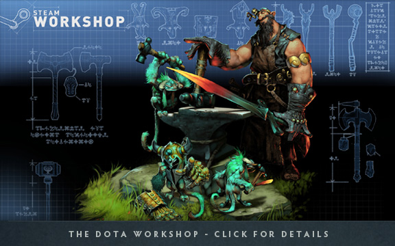 นอกจากนี้ ในวันนี้เรายังได้ประกาศ Dota 2 ในส่วนของ Steam Workshop ด้วย ถ้าคุณไม่คุ้นเคยกับ Steam Workshop มันคือสถานที่ที่แฟนๆ สามารถอัพโหลดเนื้อหาที่พวกเขาสร้างสรรค์ขึ้นเกี่ยวกับเกมนี้ ซึ่งผู้เล่นคนอื่นๆ สามารถเข้าไปโหวตและแสดงความคิดเห็นได้ เพื่อให้ทีมพัฒนาได้นำเอาความคิดของคุณไปสร้างและใส่เข้าไปในเกมอย่างเป็นทางการ และผู้ที่เป็นต้นคิดเกี่ยวกับไอเท็มนั้นๆ ก็จะได้รับส่วนลดราคาสินค้าชิ้นนั้นใน in-game store อีกด้วย โดยในปีแรกเราได้มอบเงินให้กับแฟนๆ ของ TF2 ซึ่งได้ออกแบบไอเท็มถาวรในเกมไปรวมมูลค่ากว่า 3.5 ล้านดอลลาร์