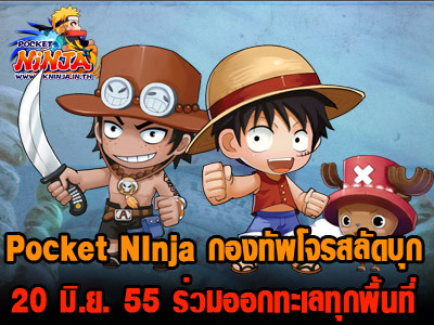 20 มิถุนายน 2555 นี้มันส์มาแน่ One Piece ถึงเวลาที่เหล่านินจา และบรีชออกทะเล พบเพื่อนเหล่าโจรสลัดความมันส์รูปแบบใหม่เพิ่มขึ้นมากมาย ร่วมสัมผัสได้ใน Pocket Ninja