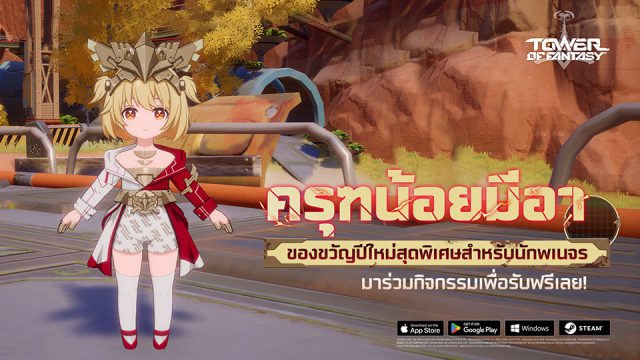 พิเศษสุดๆ กับการเปิดตัวสกินสุดน่ารัก ‘ครุฑน้อยมีอา’ สกินที่ทำขึ้นมาเพื่อเป็นของขวัญปีใหม่แก่เหล่านักพเนจรทุกคนได้หามาใส่ให้น้องมีอากันได้จากภารกิจรายวันภายในเกมไปเลยฟรีๆ! ซึ่งจะเปิดให้ได้ร่วมสนุกรับสกินสุดพิเศษในเร็วๆนี้ แต่สำหรับใครที่อยากได้สกินน้องมีอานี้ไปใช้ก่อนใคร ก็เข้ามาติดตามที่หน้าเพจ Tower of Fantasy Official ไว้ให้ดี เพราะมีกิจกรรมแจกสกินนี้ให้ได้ลองใส่กันก่อนกิจกรรมเปิดด้วยล่ะ!