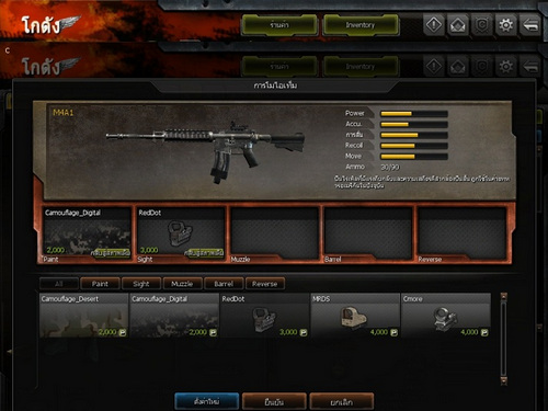 ใหม่เป็น Digital + RedDot เมื่อทำการยืนยันมีค่าใช้จ่าย รวมทั้งสิ้น 5,000 BP โดยชิ้นส่วนดังกล่าวจะติดอยู่กับปืนที่มีการเปลี่ยนแปลง