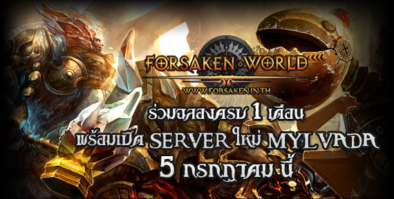 วันนี้ทางทีมงานเกมส์ Forsaken World มีข่าวดีมาบอกเกี่ยวกับการเปิดเซิร์ฟเวอร์ใหม่ หลังจากที่เปิดเกมส์มาได้เกือบจะ 1 เดือนเต็มแล้ว มีผู้เล่นให้ความสนใจเป็นอย่างมากจนต้องทำการเพิ่มเซิร์ฟเวอร์ใหม่ โดยเซิร์ฟเวอร์ใหม่นี้จะใช้ชื่อว่า Mylvada เปิดให้เล่นกันในวันพฤหัสที่ 5 กรกฎาคม 2555 เวลา 10.00 น. เป็นต้นไป ใครที่เพิ่งเริ่มเล่นหรือสนใจจะเล่นตัวใหม่ ก็ขอเชิญมาเจอกันได้ที่เซิร์ฟใหม่นี่เลยจ้า