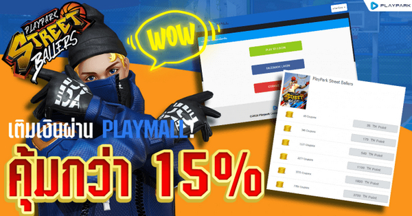 เติมเงินผ่าน Playmall ได้คูปองเยอะกว่าคุ้มกว่า! ยิ่งแพ็คใหญ่ยิ่งได้คูปองแถมเยอะ! เพิ่มเติมคลิก https://streetballers.playpark.com/th-th/topup-playmall/