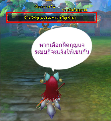 หากกุญแจดอกไหนที่เราเลือกไปแล้ว / เลือกผิด หรือเลือกถูกต้อง ระบบก็จะแจ้งให้ทราบเช่นกันดังรูป