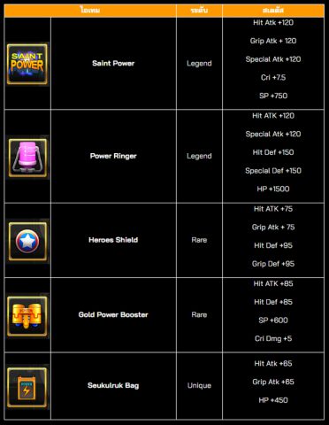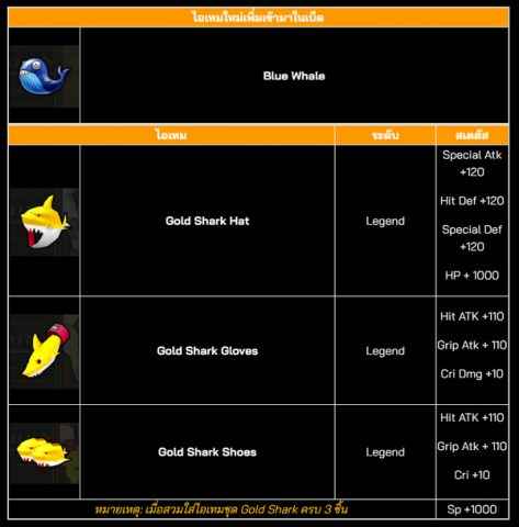 ไอเทมใหม่ที่ได้รับจากเบ็ด