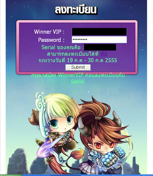 3. ลงทะเบียนขอรับ AC VIP โดยใช้ไอดีของ Winner VIP (ใครยังไม่มีอย่าลืมไปสมัครไอดีเล่นเกมก่อนนะจ๊ะ)