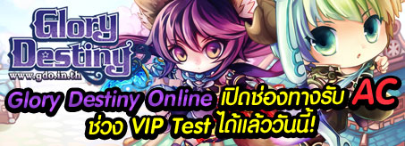 เวลาที่แฟนๆ GDO ทุกท่านรอคอยมาถึงแล้ว Glory Destiny Online เกมออนไลน์ที่สุดแสนจะน่ารักที่สุดการันตีความสนุกระดับโลก กับการเปิดช่องทางรับ AC Code ในช่วง VIP Test ได้แล้ววันนี้