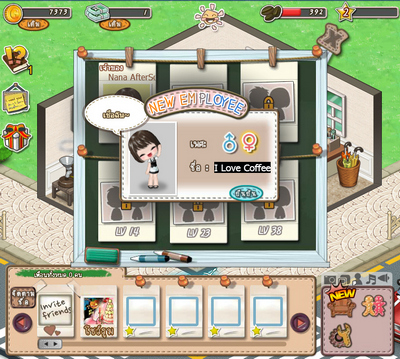 หลังจากนั้นจะเริ่มการเล่นเกม I Love Coffee ด้วยตนเอง ซึ่งเราสามารถชวนเพื่อนๆ ใน Facebook ของเราให้เข้ามาร่วมเล่นเกม I Love Coffee กับเราได้ โดยในการชวนเพื่อนแต่ละครั้ง เราจะได้รับของรางวัลตอบแทนเป็นเงิน Gold ไปจนถึงไอเทมตกแต่งร้านน่ารักๆ เพราะฉะนั้นชวนเพื่อนมาเล่นด้วยกันเยอะๆ นะคะ
