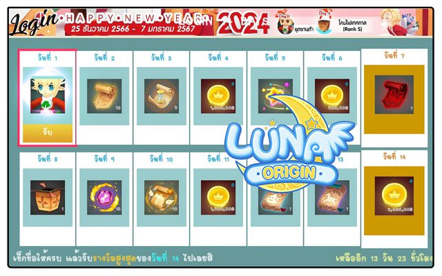 ใครที่บอกว่าเก็บเลเวลยาก ไอเทมดรอปยาก ยากให้เล่นง่ายกว่านี้หน่อย Luna Origin จัดให้!! กับ “Hot Time New Year 2024 ฟาร์มข้ามวัน มันส์ข้ามปี” เปิดคูณ EXP และ Drop Rate 100% (เฉพาะแผนที่ทั่วไป) ยาวนานถึง 14 วันติด ให้ฟาร์มมันแบบจุดใจ ล่าไอเทมกันข้ามปีกันเลยทีเดียว จัดหนักจัดเต็มแบบนี้ บอกเลยว่าไม่ควรพลาด