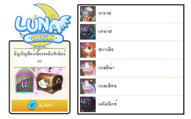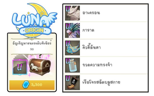 สำหรับใครที่ผสานสัตว์เลี้ยงและพาหนะไม่เคยได้ระดับ U สักที เหนื่อยกับการหามาผสานแล้ว แนะนำนี่เลย “อัญเชิญสัตว์เลี้ยงและพาหนะระดับซีเนียร์” เพราะเจ้ากล่องที่ว่านี้จะทำให้คุณหมดปัญหาเรื่องการผสาน โดยภายในกล่องนี้จะมีโอกาสสุ่มได้สัตว์เลี้ยงและสัตว์พาหนะระดับ U ตัวเป็นๆ มาใช้งานได้เลยทันที สนนราคาอยู่ที่ 30 ใบ ราคา 3,300 คริสตัล (แพงกว่ากล่องแบบปกติ 300 คริสตัล) แต่ต้องบอกก่อนนะครับว่าโอกาสในการสุ่มได้ระดับ U ก็อาจจะน้อยพอสมควร แต่ถ้าได้มาก็คุ้มค่ามากๆ เพราะสัตว์เลี้ยงและพาหนะระดับ U เพิ่มค่าสเตตัสให้เยอะมากๆ ส่วนจะมีตัวอะไรบ้าง ดูภาพประกอบด้านล่างได้เลยจ้า…