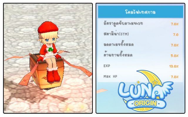 Luna Origin : เซอร์ไพรส์!! Christmas Day อัปเดตกิจกรรมเอาใจสายฟาร์ม คูณ EXP และ เพิ่ม Drop Rate ข้ามปี
