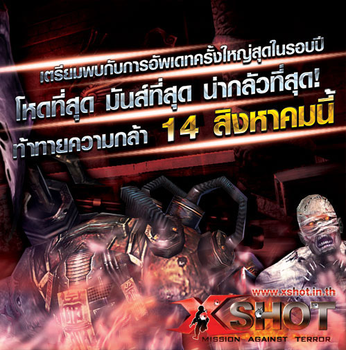ทั้งหมดนี้เป็นเพียงแค่ตัวอย่างคร่าวๆ ของการอัพเดทในวันที่ 14 สิงหาคมนี้เท่านั้น ยังคงมีรายละเอียดอีกมากมายที่เหล่าสาวกไม่ควรพลาด สามารถติดตามรายละเอียดข้อมูลเพิ่มเติมเกี่ยวกับการอัพเดทครั้งนี้ได้ที่ www.xshot.in.th ความมืดและความหวาดกลัวจะกลับเข้าปกคลุม Xshot อีกครั้ง