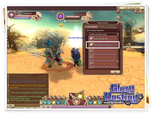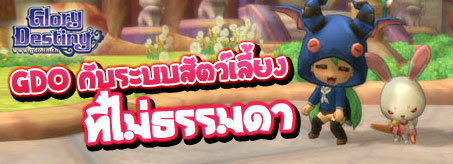 วันนี้ทีมงานนำระบบสัตว์เลี้ยงของเกม Glory Destiny Online มาบอกกันอย่างคร่าวๆ ก่อนนะครับ ส่วนรายละเอียดแบบเจาะลึกนั้นทีมงานจะนำมาเสนอในโอกาสหน้า และสาวก GDO เตรียมตัวสัมผัสความน่ารักของสัตว์เลี้ยงกันในช่วง Close Beta วันที่ 29 สิงหาคม ถึง 6 กันยายน 2555 นี้ แล้วเจอกันในเกมครับ