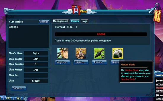 นี่ไม่ใช่ระบบตระกูลแบบทั่วไป ผู้เล่นจะได้มีโอกาสสัมผัสความรู้สึกที่ใกล้ชิดกับตัวละครที่ชื่นชอบมากกว่าที่ผู้เล่นเคยมีมา แค่สร้างตัวละครอันโด่งดังจากตระกูลต่างๆ เช่น เซ็นจู, อุจิวะ และ ซารุโทบิ ได้ตั้งแต่เริ่มต้น และเมื่อผู้เล่นมีระดับถึงเลเวล 30 หรือสูงกว่า สามารถใช้ระบบ Clan ได้จะสามารถเป็นผู้นำในการพาเพื่อนๆ ผ่านกิจกรรมต่างๆ ของ Clan เหมือนกับการสร้างตระกูลนินจาของคุณเอง
