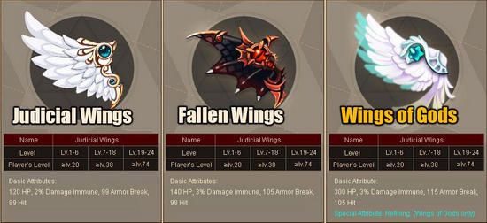 นินจาทุกคนจะมีโอกาสได้สัมผัสกับปีกอันงดงาม สามารถอัพเกรดเพิ่มค่าพลังให้สูงขึ้นอีกขั้นได้ นอกจากจะทำให้ผู้เล่นกลายเป็นนินจาที่แข็งแกร่งแล้ว ปีกยังแสดงเมื่อผู้เล่นทำการต่อสู้แสดงถึงความเหนือชั้นขึ้นอีกขั้น ด้วยค่าพลังต่างๆ มากมาย