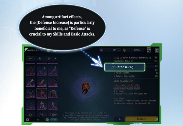 ในบรรดาเอฟเฟกต์อาร์ติแฟกต์ การเพิ่มพลังป้องกันจะเป็นประโยชน์อย่างยิ่งต่อฮันเตอร์ที่มีสกิลและการโจมตีพื้นฐานได้รับผลจากค่าสเตตัสพลังป้องกัน หากผู้เล่นได้รับอาร์ติแฟกต์ที่มีหลายเอฟเฟกต์ ก็สามารถติดตั้งอาร์ติแฟกต์ให้กับฮันเตอร์ที่มีค่าสเตตัสที่เหมาะสม