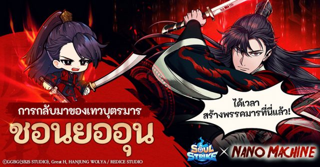 Com2uS Holdings เผยโฉมอัปเดตล่าสุดของ Soul Strike เกม idle RPG สายแฟชั่นสุดน่ารัก เปิดตัว กิจกรรมคอลแลบฯ สุดยิ่งใหญ่กับ Nano Machine เว็บตูนกำลังภายในยอดนิยมจากเกาหลี โดยได้ “ชอนยออุน” พระเอกของเรื่อง และ มือกระบี่ผู้รู้ใจของเขา “มุนกยู” มาร่วมเสริมทัพความสนุกในเกม