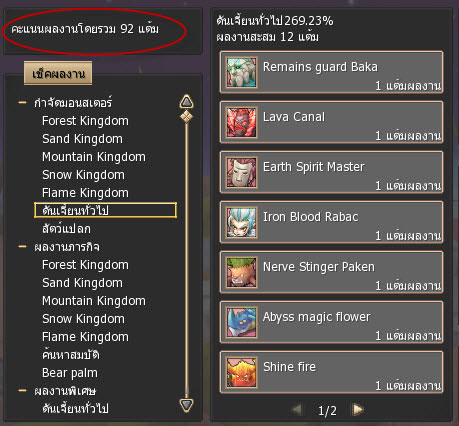 เมื่อเช็คข้อมูลก็จะว่าตัวละครเรามีคะแนนผลงานเท่าไร