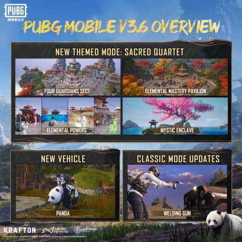 PUBG MOBILE ก้าวสู่มาสเตอร์ทั้ง 4 ธาตุ อัปเดตใหม่ 3.6 The Sacred Four พร้อมแพนด้าน่ารักเกินต้าน โดดร่มสู่สมรภูมิ สำนักสี่ผู้พิทักษ์ พร้อมกันได้แล้ววันนี้!