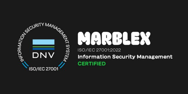 MARBLEX ได้รับการรับรอง ISO/IEC 27001 โดยตรวจสอบระบบการจัดการ ความปลอดภัยด้านสารสนเทศในการวางแผน, การดำเนินการ, การพัฒนา และ การบำรุงรักษาเกี่ยวกับการบริการบล็อกเชน รวมถึงบริการ MBX, De-Fi, NFT, และ เกม Web3 ด้วยเรื่องสำคัญนี้ ทาง MARBLEX มีเป้าหมายที่จะเสริมสร้างความสามารถในการแข่งขันในตลาดเกมบล็อกเชนด้วยการยกระดับความปลอดภัยและความน่าเชื่อถือของข้อมูล