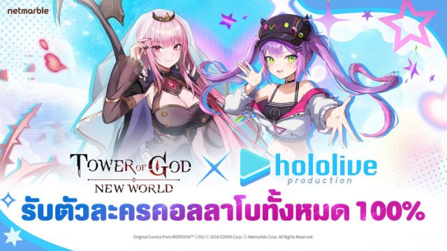 กรุงเทพฯ, ประเทศไทย (วันที่ 9 เมษายน พ.ศ. 2568) – เน็ตมาร์เบิ้ล ผู้พัฒนาและผู้เผยแพร่เกมมือถือคุณภาพสูงชั้นนำ ได้ปล่อยอัปเดตใหม่สำหรับเกมแนว Collectible RPG อย่าง Tower of God: New World จับมือร่วมคอลลาโบกับ ‘โฮโลไลฟ์’ กลุ่ม VTuber ยอดนิยมของญี่ปุ่น ผู้เล่นสามารถสัมผัสความสนุกไปกับสองสมาชิกโฮโลไลฟ์สุดปังในฐานะเพื่อนร่วมทีมที่สามารถเล่นได้ได้แล้ววันนี้