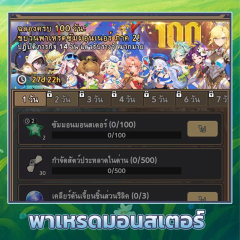 - นอกจากนี้ยังจัดกิจกรรม ‘พาเหรดมอนสเตอร์‘ เป็นรอบที่ 2 แจกมอนสเตอร์ตัวเก่งระดับตำนานทั้ง 7 ตัว และ ยังมีการ ซัมมอนคัดเฉพาะมอนสเตอร์ใหม่ อีกด้วย