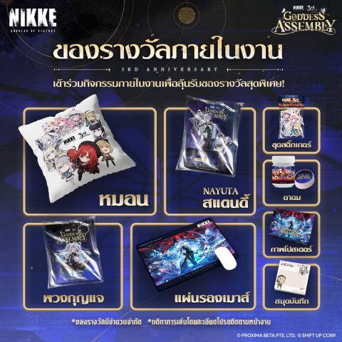 - ถ่ายภาพกับ Nayuta ภายในงาน แล้วโพสลง Blablalink พร้อมติดแฮชแท็ก #NIKKE #NIKKETHGODDESSASSEMBLY เพื่อรับแม็กเน็ตลายพิเศษนายูตะ 1 ชิ้น