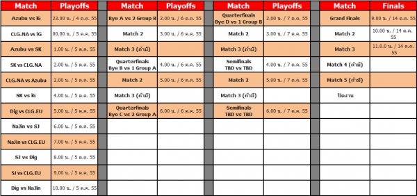 ถึงแม้ทีมไทยเราจะไม่มีโอกาสเข้าไปแข่งขันในรายการนี้ แต่ก็ยังมีการถ่ายทอดสดยิงตรงมาจากประเทศสหรัฐอเมริกาให้ชมทุกคู่ โดยตารางการแข่งขันคู่แรกจะเริ่มเวลา 23.00 น. ของคืนวันที่ 4 ตุลาคม ยาวไปจนถึง 10 โมงเช้าของวันที่ 5 ตุลาคม จากนั้นจะมีถ่ายทอดสดต่อในช่วงกลางคืน สามารถดูตารางการแข่งขันจากด้านล่างได้เลย
