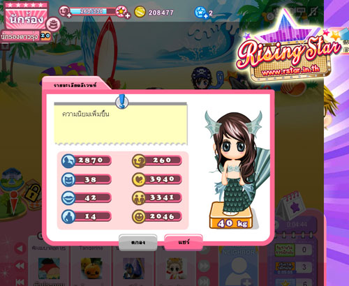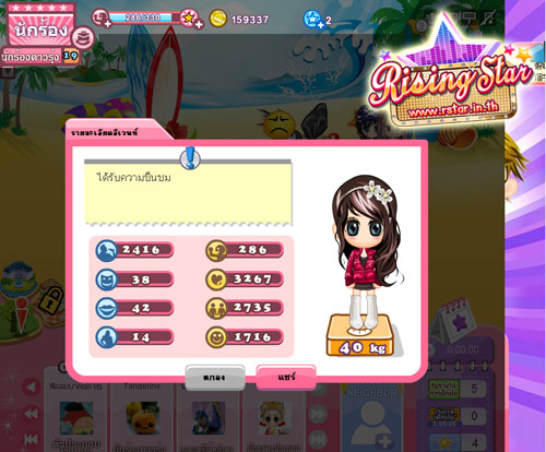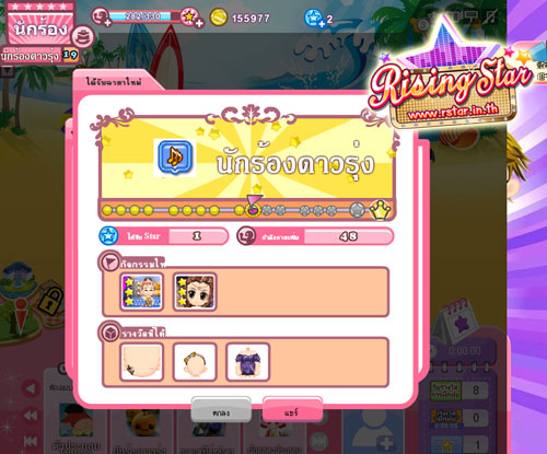 แนะนำกันไปพอเป็นออเดิร์ฟ หวังว่าคงจะถูกใจคอเกม ที่นิยมชื่นชอบเกาะติดชีวิตคนดังกันนะคะ ทีนี้จะได้รู้กันซักทีว่า กว่าจะได้เป็นนักร้อง , พระเอก-นางเอก , นางแบบ และพิธีกร คนดัง ไม่ได้เป็นกันง่ายๆ ยังไงทาง OHLALA ก็ต้องขอฝากอีกหนึ่งเกมใหม่ Rising Star เกมบนเว็บ เล่นง่าย ไม่ต้องดาวน์โหลด และอย่าลืมนะคะ สามารถเข้าไปติดตามข่าวสารเพิ่มเติมได้ที่ www.rstar.in.th