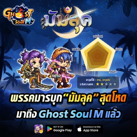 Ghost Soul M อัพเดทใหญ่ ปล่อยอาชีพใหม่ตัวโหด สู่โลกวิญญาณ! “มัมลุค” นักรบผู้เชี่ยวชาญการต่อสู้ทุกระยะ มาพร้อม ภูตตัวใหม่ ระดับ Legendary “ฮาวูมู” และ กิจกรรมต้อนรับ “มัมลุค” ช่วยเลเวลอัพแบบจัดเต็ม มีแจกชุดแฟชั่นเฉพาะ “มัมลุค” และ อัพเดท“อาภรณ์แห่งนักสู้”เซ็ตใหม่ พร้อมฟาร์มกันเพลินๆทั้งวันทั้งคืนกับ บัฟ EXP+ 70% ทั้งเซิร์ฟ และยังมีกิจกรรมอื่นๆอีกมากมาย เจอกัน 21 มกราคมนี้!!