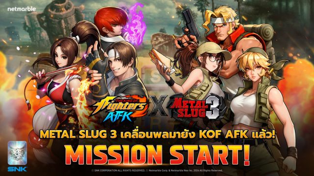 กรุงเทพฯ, ประเทศไทย (วันที่ 11 กุุมภาพันธ์ พ.ศ. 2569) – เน็ตมาร์เบิ้ล ผู้พัฒนาและผู้เผยแพร่เกมคุณภาพสูงชั้นนำ เปิดตัวอัปเดตคอลแลบใหม่สำหรับเกม RPG AFK ‘THE KING OF FIGHTERS AFK’ แล้ววันนี้ นำเสนอเหล่าไฟท์เตอร์เลเจนด์และคอนเทนต์ใหม่ที่ได้รับแรงบันดาลใจจากเกมแอ็กชันสุดคลาสสิกของ SNK อย่าง METAL SLUG 3 ให้ผู้เล่นได้สนุกกัน !