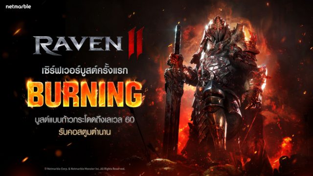 RAVEN2 เปิดเซิร์ฟเวอร์บูสต์ ‘BURNING’ ครั้งแรก จัดเต็มรางวัลพัฒนา ! มอบคอสตูมตำนานให้ผู้เล่นทุกคนที่ถึงเลเวล 60