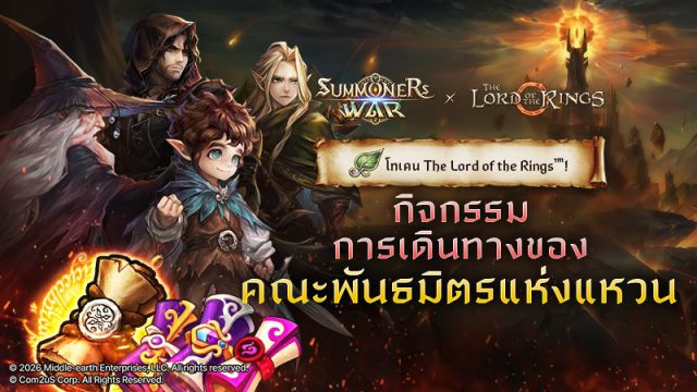 เกมมือถือ RPG ระดับโลก Summoners War: Sky Arena จัดกิจกรรมพิเศษฉลองการคอลแลบฯ The Lord of the Rings กิจกรรมครั้งนี้เปิดโอกาสให้ผู้เล่นได้รับ ไอเท็มคอลแลบฯ แบบจัดเต็ม พร้อมสัมผัสเนื้อหาคอลแลบฯ ที่ผสานความสนุกเชิงกลยุทธ์ของ Summoners War เข้ากับโลกแฟนตาซีของ The Lord of the Rings ได้อย่างเข้มข้นยิ่งขึ้น