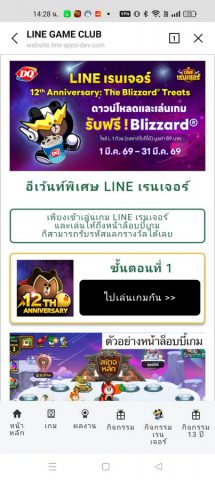 - เข้าไปที่ LINE GAME CLUB และ เลือกแท็บกิจกรรมเรนเจอร์
