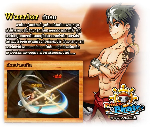 สวัสดีชาวโจรสลัดทั้งหลาย เกม Prince of Pirate หรือเกม PoP ของเราก็เตรียมเปิด Open Beta กันในวันที่ 24 ตุลาคม 2555 นี้แล้ว วันนี้ทีมงานเกม Prince of Pirate เลยจะพาเพื่อนๆ ตามไปดูเหล่าหัวหน้าโจรสลัด หรือตัวละครของเรา ทั้ง 6 อาชีพ ว่ามีอะไร มีที่มาอย่างไร และมีสกิลสวยงามกันขนาดไหนครับ