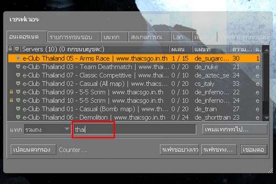 ขั้นตอนค้นหา และเข้าเล่น CS: GO เซิร์ฟเวอร์ไทย